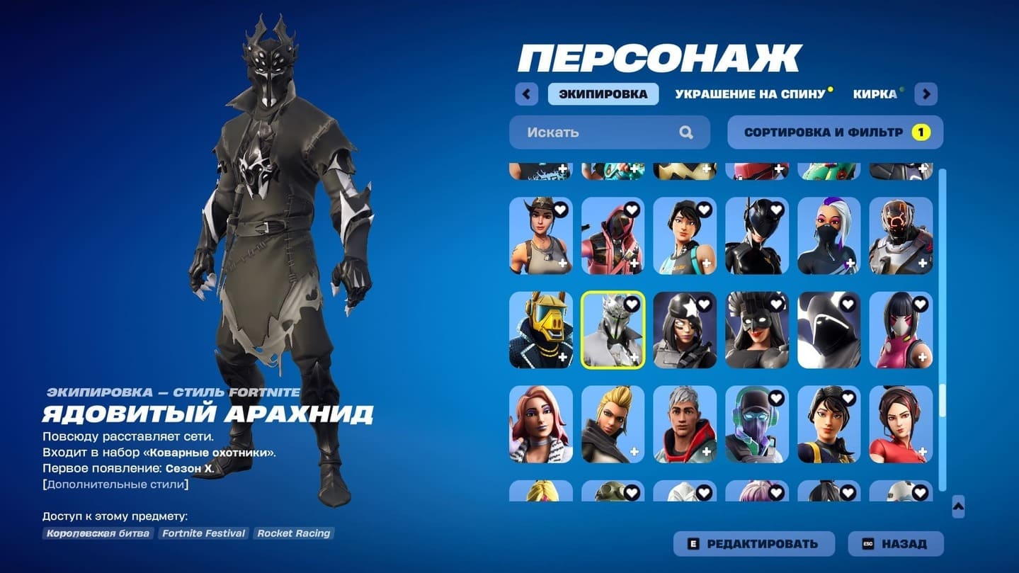 ⭐️ Боевой пропуск: 2-11 сезон⚔️ PVE💥 Всего скинов: 120🔥 Топ скины: 10+💰 1208V Bucks