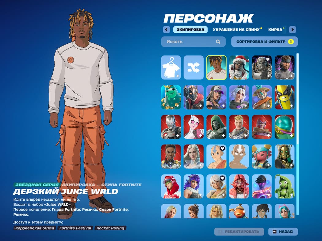 ⭐️ Боевой пропуск: 1-12 сезон⚔️ PVE💥 Всего скинов: 156🔥 Топ скины: 15+💰 250V Bucks