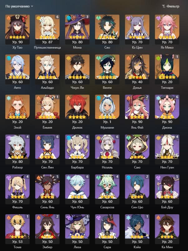 📈 Ранг: 60 🧍♀️ Персонажи: Е Лань, Ху Тао, Джинн и другие 🦾 Оружие: 5 звезд ✨ Примогемы: 340