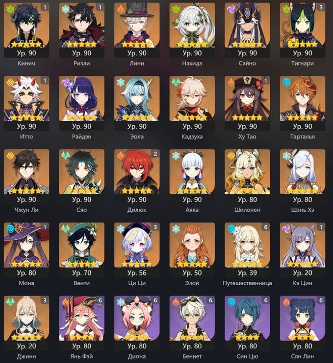 📈 Ранг: 60 🧍♀️ Персонажи: Кинич, Ризли, Лини и другие 🦾 Оружие: 5 звезд ✨ Примогемы: 102