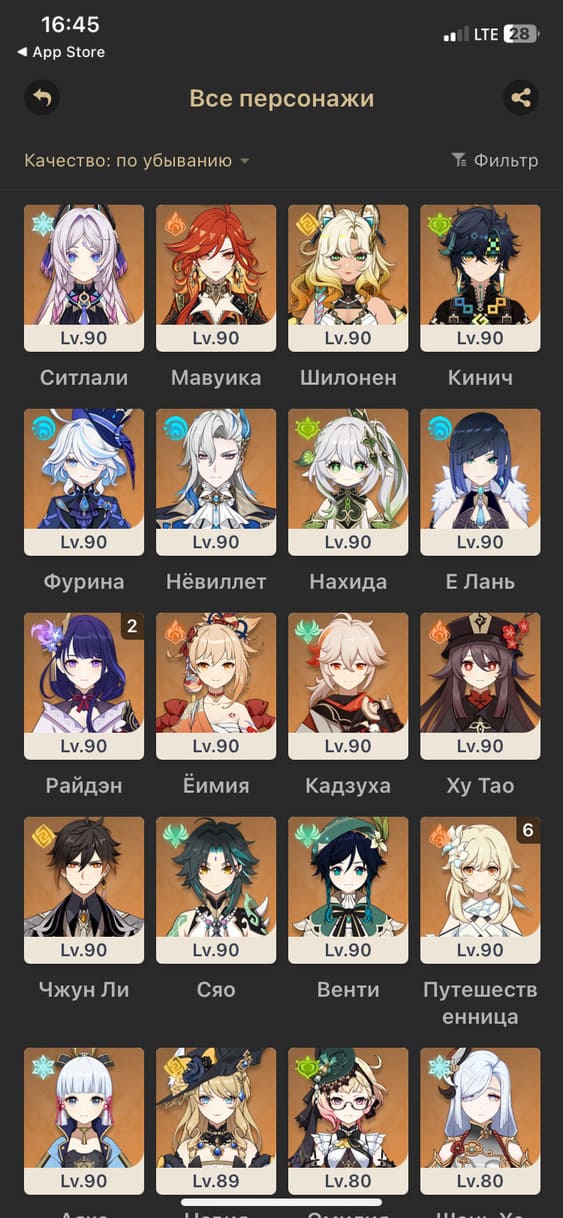 📈 Ранг: 57 🧍♀️ Персонажи: Ситлали, Мавуика, Шилонен и другие 🦾 Оружие: 5 звезд ✨ Примогемы: 153