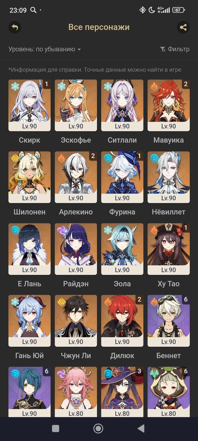 📈 Ранг: 48 🧍♀️ Персонажи: Скирк, Эскофье, Ситлали и другие 🦾 Оружие: 5 звезд ✨ Примогемы: 14