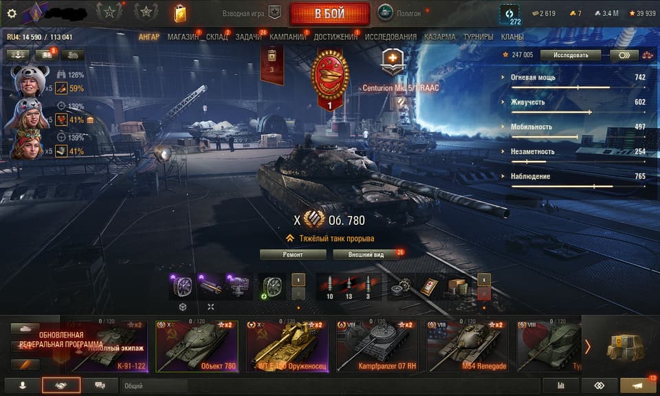 🏆Процент побед: 46% 🎌Число боёв: 19 000 💰Серебро: 2 700 000
